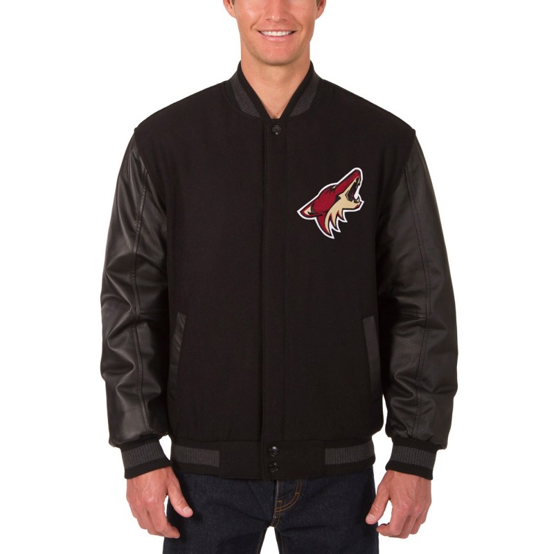 - Material: 100% Wool – Body and Rib Trim,, 100% Genuine Leather – Sleeves and Pocket Trim, 100% Polyester – Lining