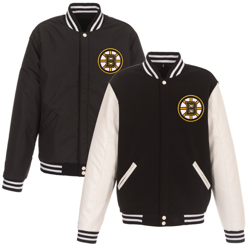 - Soft-to-the-touch polyester fleece body with a faux leather sleeves and nylon shell reverse side