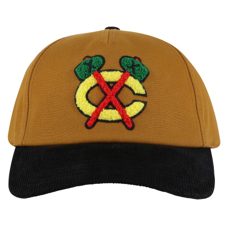 - Embroidered chenille team logo applique on front