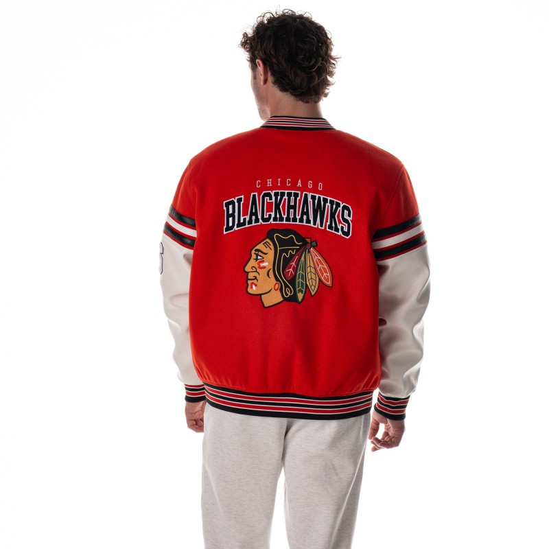 - Embroidered graphics with chenille details on chest, sleeves and back
