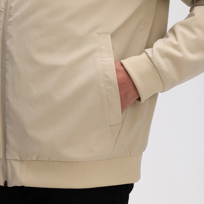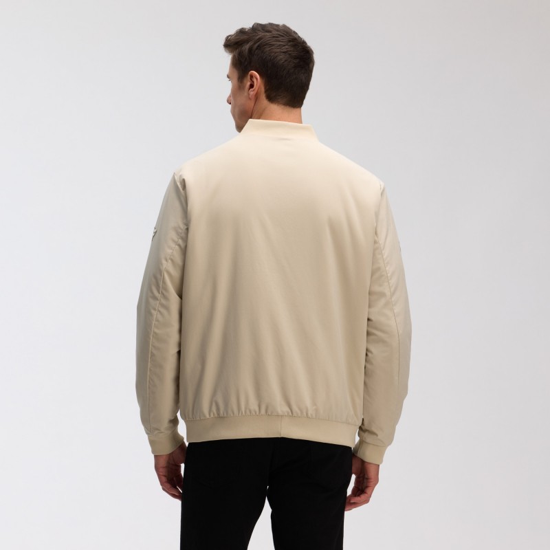 - Rib-knit stand-up collar, cuffs and hem