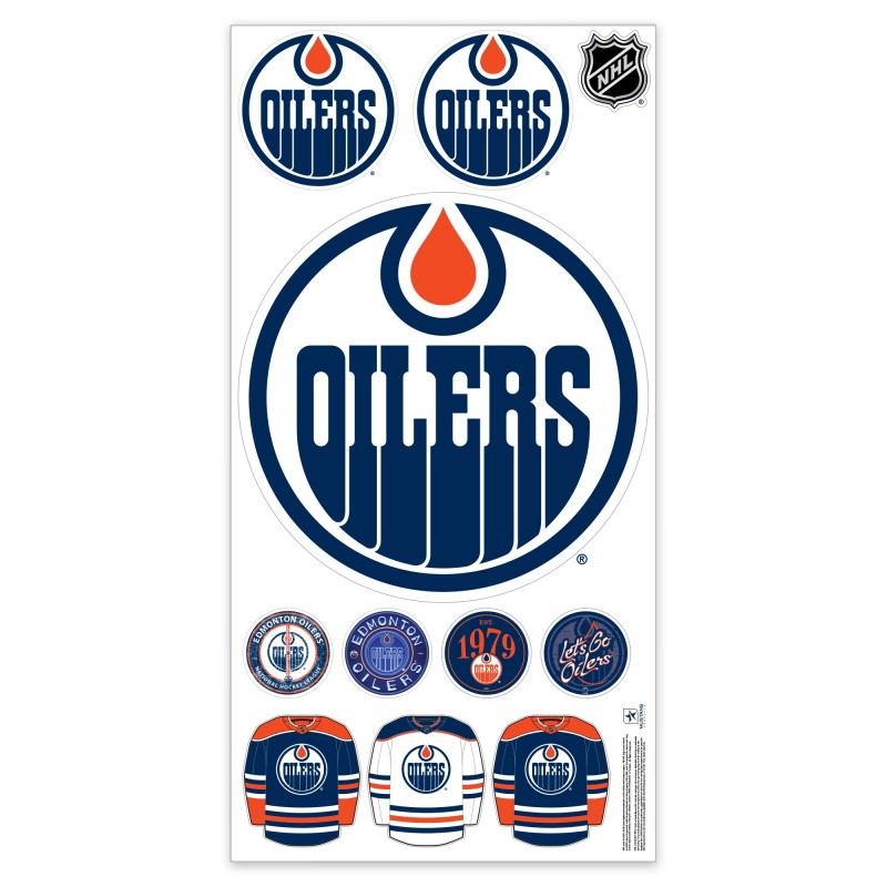 - Set includes one large logo decal, two small logo decals, three small circular decals, three jersey decals, an one NHL Shield decal