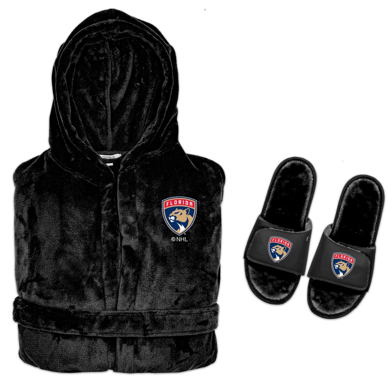 - Bundle includes robe and pair of slide sandals