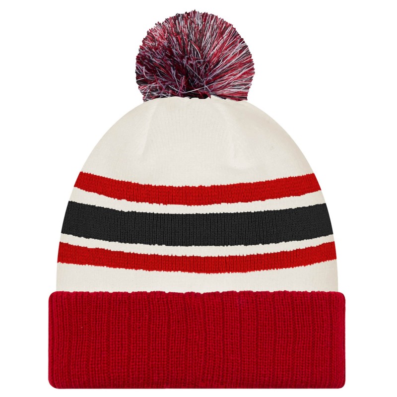 - Knit striped design on the crown