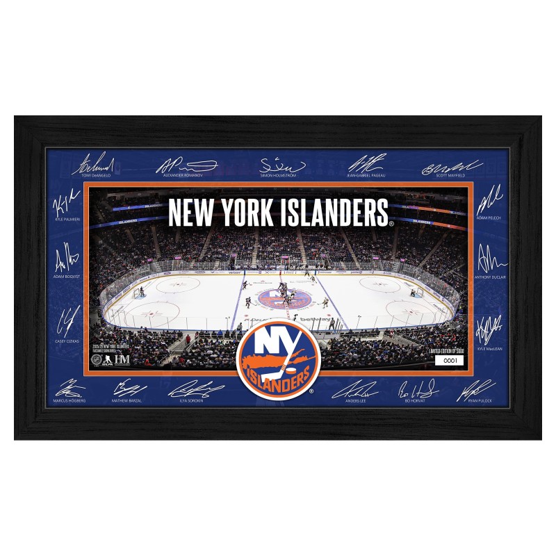 - Showcases facsimile signatures of players surrounding a detailed image of their home rink