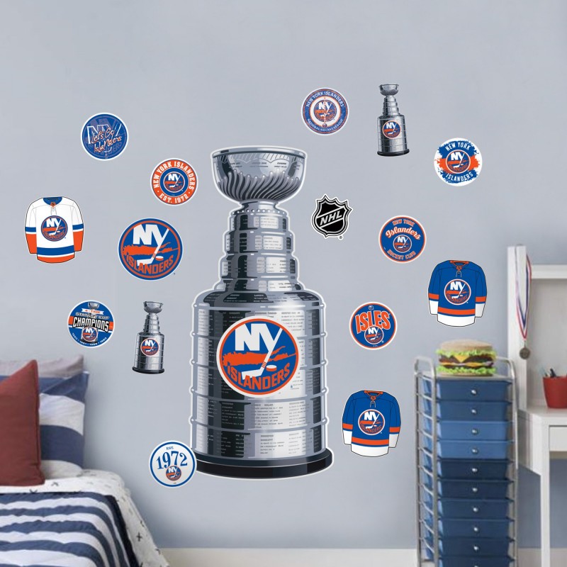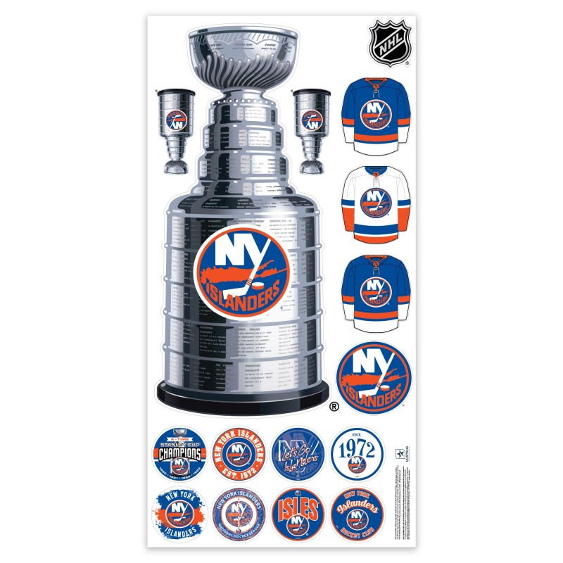 - Set includes eight small circular decals, one team logo decal, three jersey decals, one NHL Shield decal, two small Stanley Cup decals, and one large Stanley Cup decal