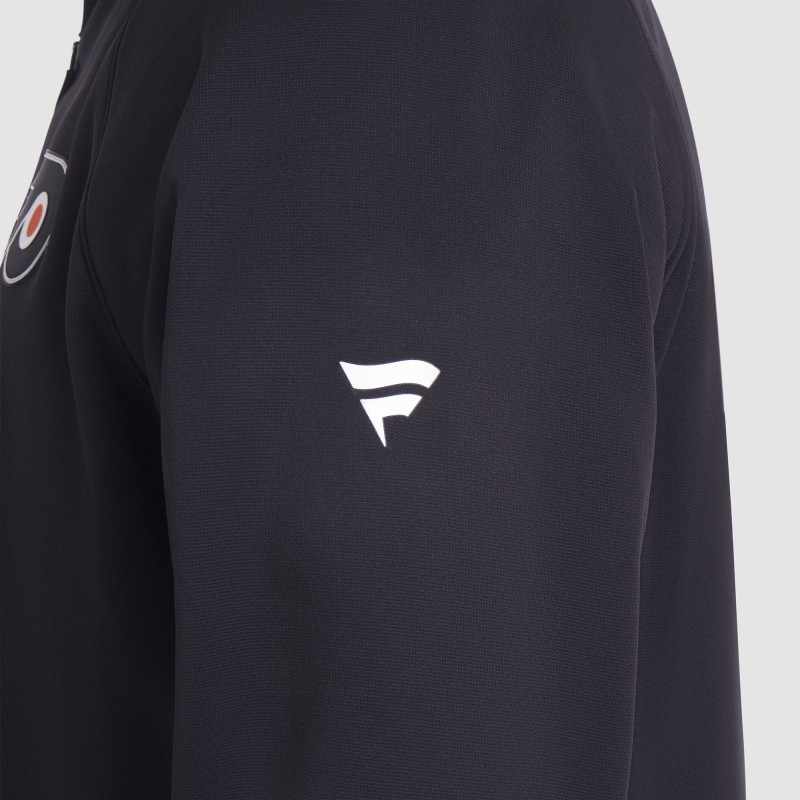 - Twill team logo applique at left chest