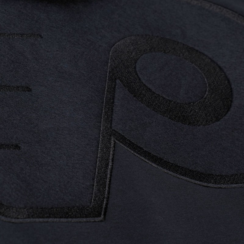 - Tonal embroidered fabric appliques across the chest, on both sleeves, across the back and on top of the hood