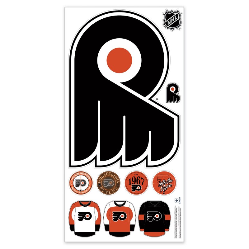 - Set includes one large logo decal, two small logo decals, three small circular decals, three jersey decals, an one NHL Shield decal