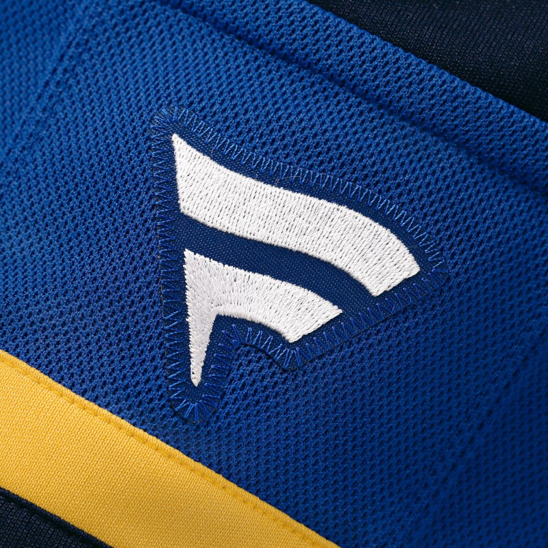 - Sewn-down tackle twill with embroidered crest and shoulder patches