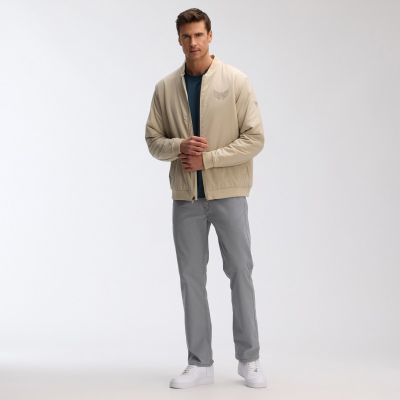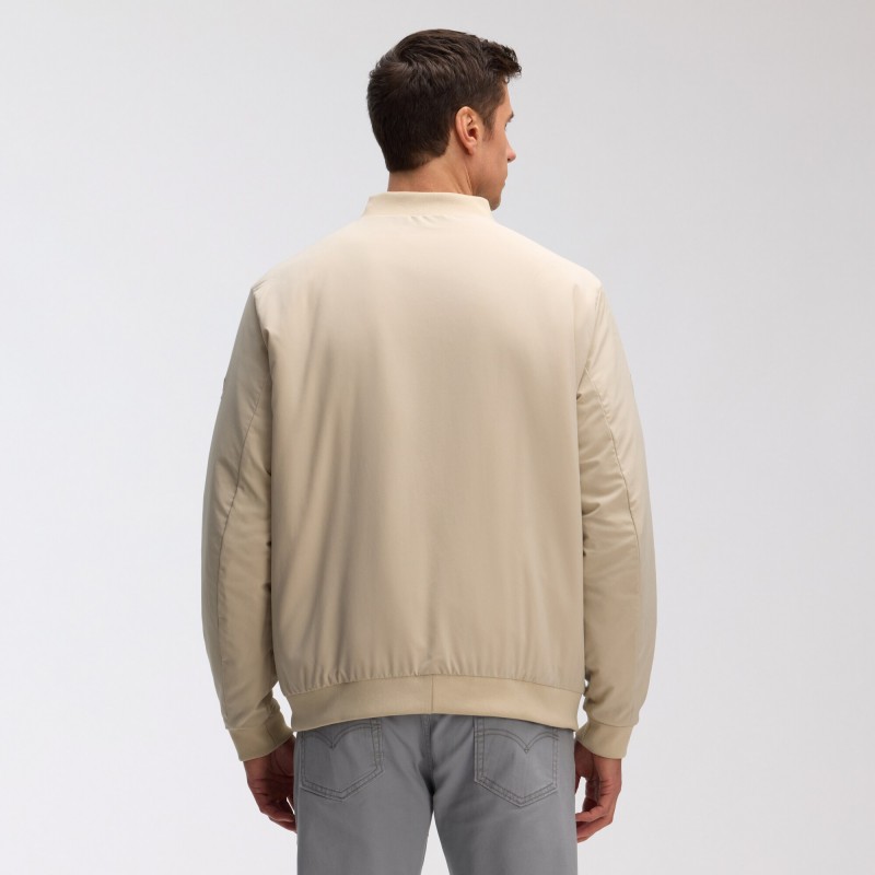 - Rib-knit stand-up collar, cuffs and hem